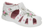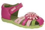 Прелестные сандалии от Flamingo из натуральной и искусственной кожи и оформлена перфорацией. Ремешки на застежках-липучках украшены аппликацией в виде цветочков. Сердцевина цветов декорирована стразами. Полужесткий закрытый задник и фиксирующие ремешки обеспечивают оптимальную посадку обуви на ноге, не давая ей смещаться из стороны в сторону и назад. Стелька из натуральной кожи дополнена супинатором с перфорацией, который обеспечивает правильное положение ноги ребенка при ходьбе, предотвращает плоскостопие. Перфорация на стельке позволяет ногам "дышать". Рифленая поверхность подошвы защищает изделие от скольжения. Ортопедический каблук Томаса укрепляет подошву под средней частью стопы и препятствует ее заваливанию внутрь.