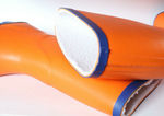 Симпатичные ярко-оранжевые детские сапоги Keddo, из прочной эластичной и гибкой резины, с внутренней стороны дополнены искусственным мехом. Утеплитель не толстый, сапоги не зимние, а демисезонные.