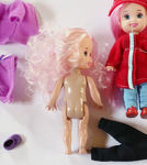 Волосы у светленькой куклы совсем плохие (лезут и жидкие, голова просвечивает), у куклы с розовыми волосами - получше (они хотя бы густые).