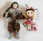 11-см маленькая Blythe (Блайз) со своим питомцем Петшоп божьей коровкой, на фото рядом с 18-см фарфоровой куклой.