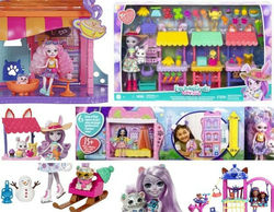 Enchantimals 2022: дом с собачкой, леопард с санями, рынок с кроликами, качели с белками