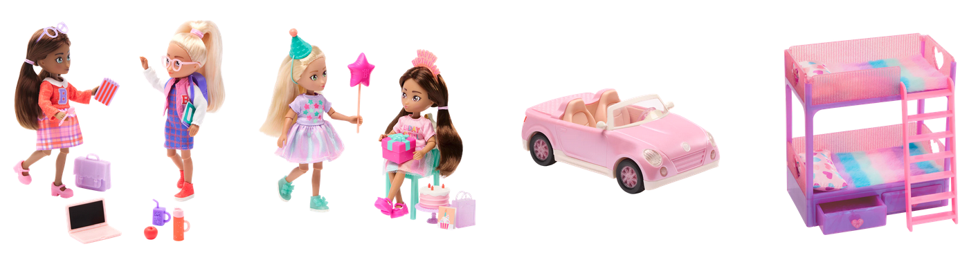 Линейка Hey Bestie™ на момент запуска в 2025 году представлена семью наборами кукол и четырьмя игровыми наборами. От кафе Hugs & Mugs до игрового набора на тему парикмахерской Lush & Lovely - все это можно приобрести по доступной цене.