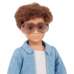 Кукла мини-мальчик и набор для гостиной. Кукла поставляется в комплекте с рубашкой, топом, брюками, туфлями и солнцезащитными очками.
