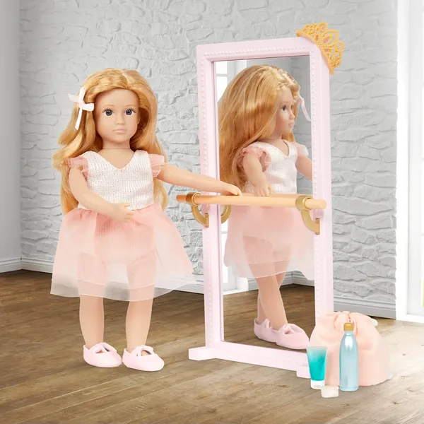 Мини-кукла и аксессуары для танцев: веселитесь вместе с Чери! У этой мини-куклы серые глаза и золотисто-русые волосы, которые легко укладывать. В комплект входит: 6-дюймовая кукла, купальник, 2 пары балетных туфель, пара крыльев, резинка для волос, диадема, расческа, гель для волос, бутылка с водой, сумка для танцев и балетное зеркальце.