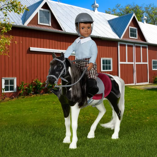 Кукла мини-мальчик и лошадка: отправляйтесь играть вместе с Лэндоном и Луной! У мальчика темно-карие глаза и короткие вьющиеся волосы, топ, штаны, сапоги для верховой езды, шлем. Также в наборе лошадь, седло, подседельная подушка и уздечка с поводьями.