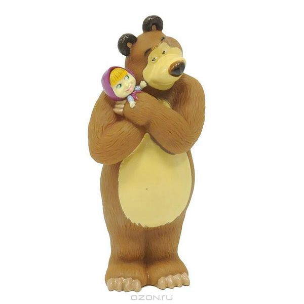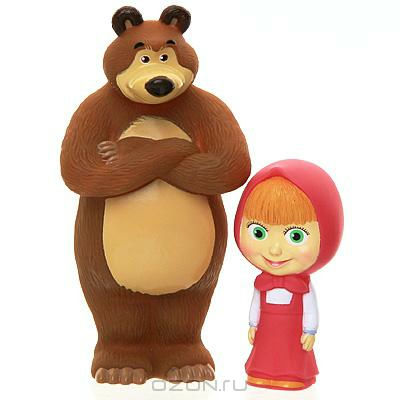 Купили фигурки Маши и Медведя, производитель "Затейники", стоят около 200 руб. Сделаны из пластизоля, качество очень хорошее. Жаль только, что не соблюдены пропорции фигурок: Маша по сравнению с Мишей конечно крупновата, и голова у нее большая слишком! Фигурки очень удобны для игры. Мишу можно использовать в постановках русских народных сказок, а Маша у нас уже бегает за животными с фермы Василия и Василисы. Дочка просто визжала от радости, когда делали постановку 1 серии мультфильма, когда собака спряталась в будку (Полкан со своей будкой очень подошел для этих целей), курица спряталась в колодце и т.д. По размерам фигурки отлично дополняют друг друга. Но как дочка Василисы Маша не годится - великовата.