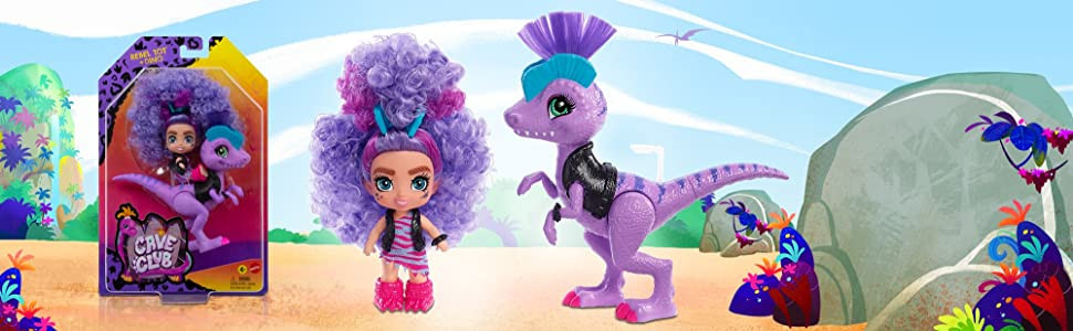 Cave Club Cave Tots Rebel Tot doll - кукла и динозаврик в фиолетовых цветах:
