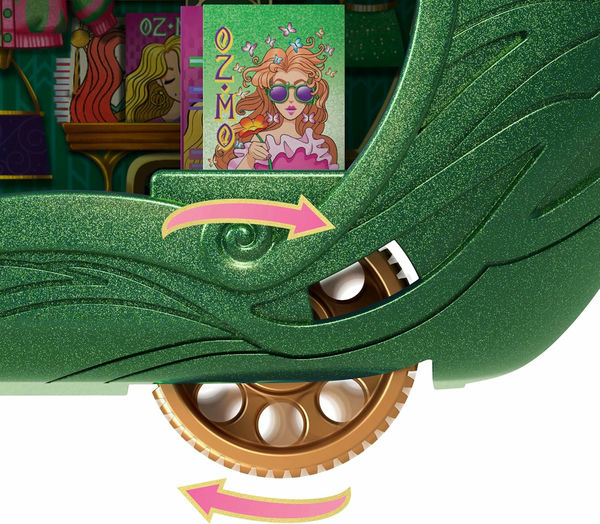 Игровой набор Mattel Universal Pictures Wicked Emerald City Train, созданный по мотивам фильма передает волшебство страны Оз благодаря деталям, как в кино, рабочим колесам, трем игровым площадкам и 14 аксессуарам.