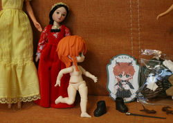 Олень - Люминир. У него ярко-рыжие волосы и два магнитных рога (они просто примагничиваются к голове - на самом деле, не лучшее решение, потому что их очень легко потерять; брать эту куклу в дорогу можно только без рогов).