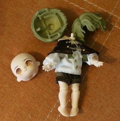 Для того, чтобы одеть кукле накидку, пришлось снять голову. Так что посмотрим, как устроена голова и волосы: