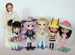 Две мини Pullip и три мини Blythe (Блайз). Они примерно одного роста, но лица отличаются сильно. А вообще - одна замечательная коллекция мини-кукол.