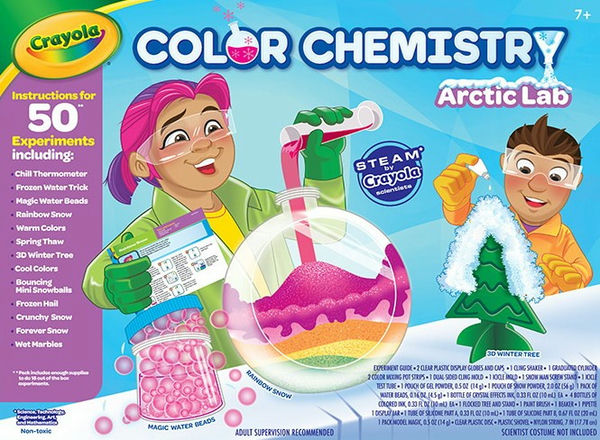 Этот набор от Crayola позволяет исследовать цвет с помощью 50 научных экспериментов зимней тематики, включая 15 готовых проектов, которые не требуют каких-либо дополнительных предметов домашнего обихода. Все необходимое для них уже содержится в коробке. А также 32 дополнительных научных мероприятия.