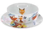 Набор детской посуды "Lovely Lady", 4 предмета, от Legendale. Набор состоит из чашки, супницы, тарелки и пашотницы, оформленных рисунком в виде сказочных животных.