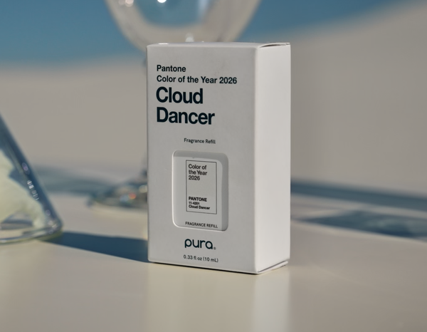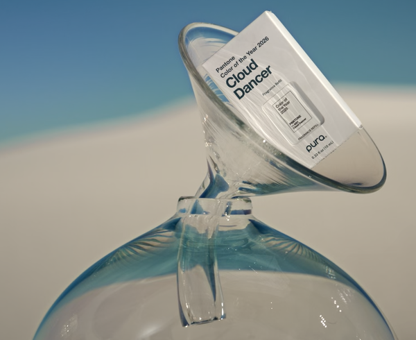 Аромат Pura x Pantone Cloud Dancer доступен в течение ограниченного времени в магазине pura.com.
