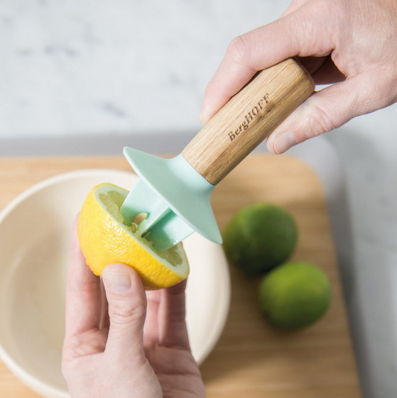 Незаменимая вещь для тех, кто любит готовить: лимонный сок встречается во многих рецептах. Линия Leo от BergHOFF, в которую входит и этот пресс, оживит кухню игривыми цветами, чистыми линиями и мягкими текстурами. Деревянные и синтетические ручки, мягкие на ощупь материалы рядом с нержавеющей сталью, пробка и бамбук — каждый материал тщательно отобран "домашним" дизайнером Питером Руксом, чтобы продемонстрировать качество, функциональность и эстетичность продуктов Leo. Этот инструмент гарантирует, что только свежевыжатый лимонный или лаймовый сок попадет в ваше блюдо. Только сок — а не косточки.
