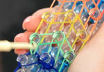 Здесь нам понадобится большой станок и цветные резиночки семи цветов радуги (в общем-то, можно брать любые цвета, какие у вас есть, но если плести именно "радугу", нужны: красный, оранжевый, жёлтый, зелёный, голубой, синий, фиолетовый цвета резиночек).