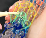 ... протягиваем эту резинку через все, и оставляем её закреплённой на крючке.