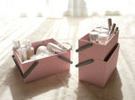 Бокс имеет удобные ручки для переноски и подкладку из войлока того же цвета, что и ручки.