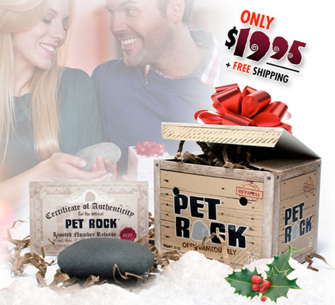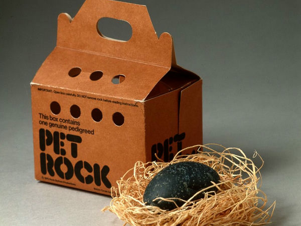 А вот в 1970-х годах продавалась действительно удивительная игрушка-питомец — Pet Rock ("камень-питомец"). Да, вы поняли правильно: это был именно камень. Просто камень.