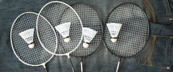 Набор с 4 ракетками в чехле для игры в бадминтон. И не только ракетки - здесь есть и воланы, и даже сетка!