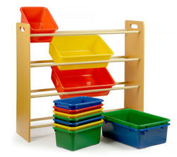 В России в продаже сегодня также есть много разных систем для хранения, ящиков для игрушек, а также ящиков и коробов для хранения разных вещей (в том числе одежды), однако хотелось бы именно такой стеллаж - с наклонными ящиками разных размеров, расположенных в 3-4 яруса, в прочном деревянном каркасе.