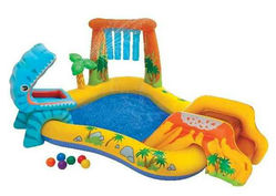 Развлекательный водный игровой центр состоит не только из двух бассейнов, соединённых горкой. Ещё и арка, фонтан, горка, надувные игрушки в комплекте.