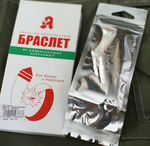 Упаковка картонная и фольгированная упаковка (запах не выветривается). После ношения браслет нужно снова вкладывать в фольгированную упаковку.