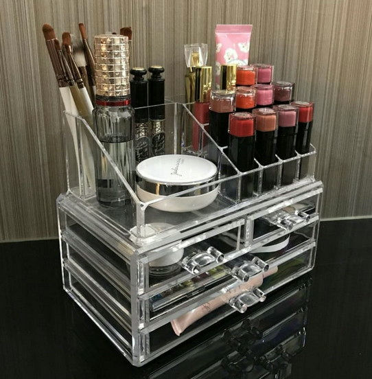 Прозрачная акриловая подставка для косметики: вы всегда сможете легко находить любимейшие средства. Можно штабелировать или установить отдельно: ящики и верхний поднос. А есть даже вращающиеся!