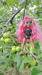 Дочка только в домике играет куклами. Это я им на улице устраиваю фотосессию. С мамиными цветами.