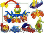 Веселый осьминожка, игровой набор для ванны. Игровой центр на присосках, и 6 фигурок морских обитателей.Осьминог крепится к бортику ванны или к кафелю с помощью присосок, на каждом щупальце осьминога крючочек, на которые подвешиваются игрушки забавные морские обитатели. Игрушки с прозрачной стенкой и внутри каждой прячется сюрприз.