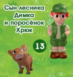 В 13 выпуске Животных леса - фигурки мальчика и малыша из семейства кабанов.