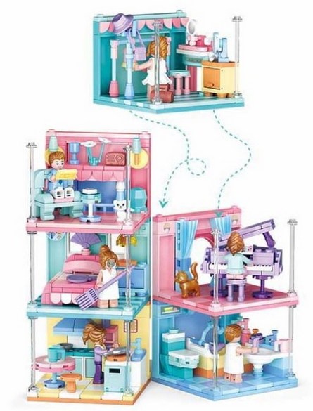 Каждый тематический конструктор из серии "Мини-комната" состоит из ста с небольшим деталей. Вы можете собрать кухню (8 см в длину) и другие комнаты. Все наборы данной серии объединяются в один большой полноценный дом. В наборах также есть фигурки персонажей! У вас получится дом и целое семейство: