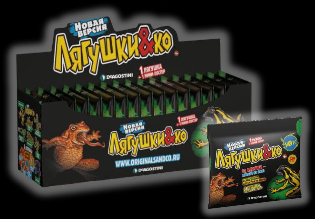 Новая коллекция серии &Ко – «Лягушки&Ко Новая версия». Прыгучие, опасные, противные – лягушки из новой коллекции от Деагостини удивят любого ребёнка! Коллекция состоит из 22 лягушек. В коллекции есть лягушки с суперээектом: 4 меняют цвет на солнце, 4 светятся в темноте! В каждой упаковке вы найдете описание к каждой лягушке.