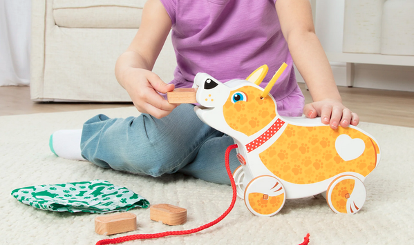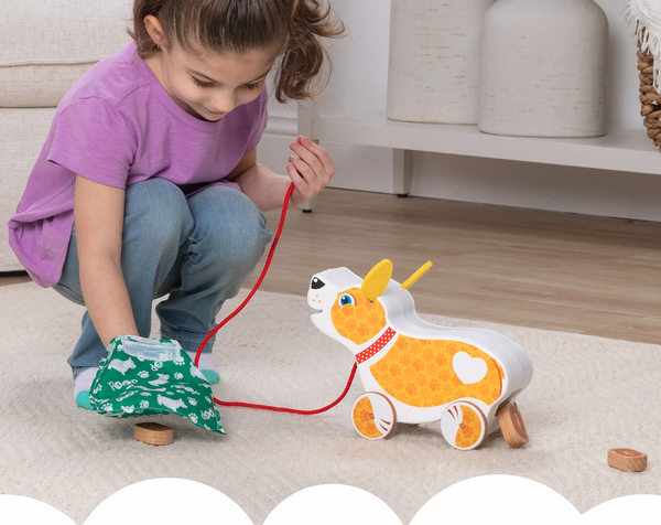 Эта деревянная игрушка-переноска от Melissa & Doug наверняка заставит маленьких любителей животных бегать по комнате и хихикать от радости! Скормите очаровательному песику одно из трех деревянных собачьих лакомств