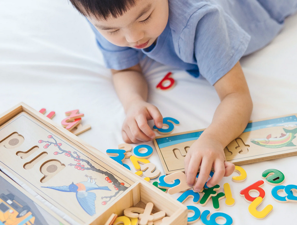 Соберите пазл, чтобы составить слово по буквам. Этот красивый набор помогает детям познакомиться с буквами алфавита и их звуками, а также развивает словарный запас для чтения (только на английском языке). Буквы также прекрасно подходят для рисования по трафарету и множества обучающих игр. Пазл состоит из 50 разноцветных деревянных букв, которые помещаются на восьми двусторонних досках с вырезами.