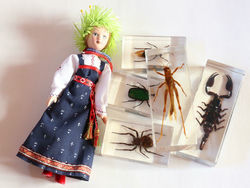 Насекомые и их знакомые, несколько образцов серии, рядом с 18-см куклой.