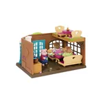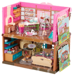 Упаковка у наборов Li'l Woodzeez своеобразная - без коробки, все детали прикреплены к зданию на картоне и блистере. Распечатывать - это отдельная история. Посмотрим со всех сторон (это наше четвертое здание Вудзис, предыдущие три - тоже на фото):