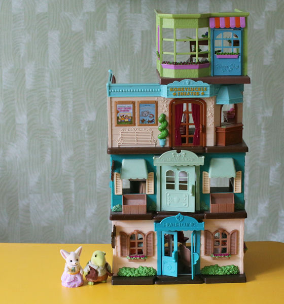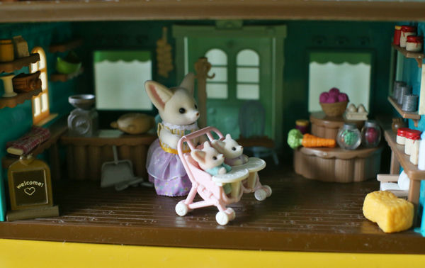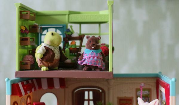 Li'l Woodzeez - супермаркету (этот набор мы покупали много-много лет назад), а также театру и цветочному магазинчику (покупки прошлого, 2025-го, года). Посмотрим с разных сторон: