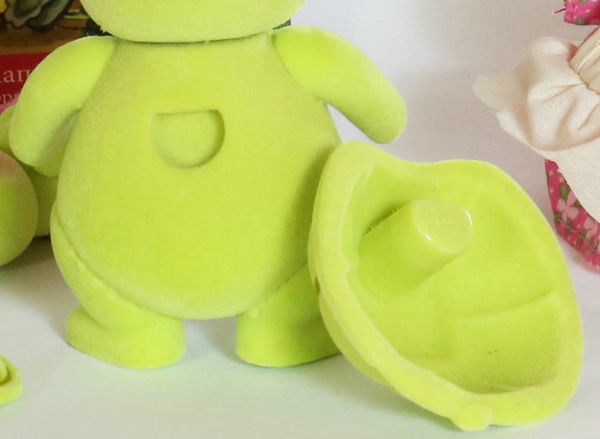 Как уже сказано выше, панцири черепах оказались съёмными, у всех 4-х фигурок семейства, в том числе и у малыша. Снимать и одевать их легко, одежду для этого снимать не нужно, в ней предусмотрены вырезы. Панцири тоже флокированные, очень красивые.