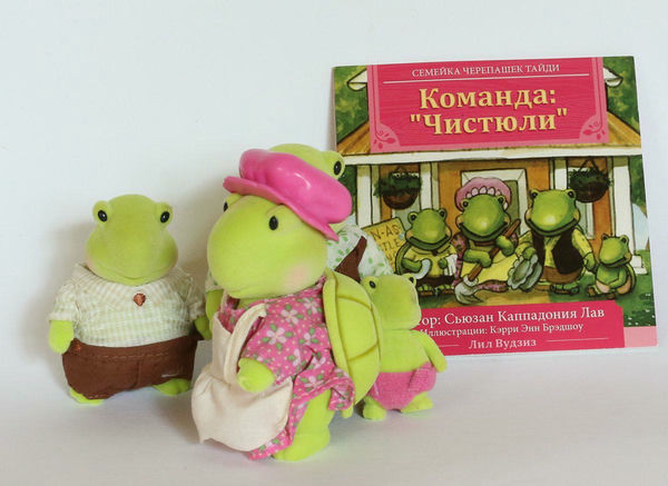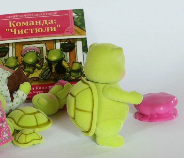 У семейства черепашек очень нравится цвет фигурок - яркий салатово-зелёный, очень жизнерадостное семейство, поэтому и заказывали его одним из первых.