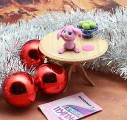 Фигурка - ярко-розовая, очень смешная, зайка ушки развесила