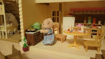 Лесенку можно поставить так, чтобы вела на второй этаж, или прислонить к стене. За стен дополнительной пластины пола первый этаж можно сделать шире.
