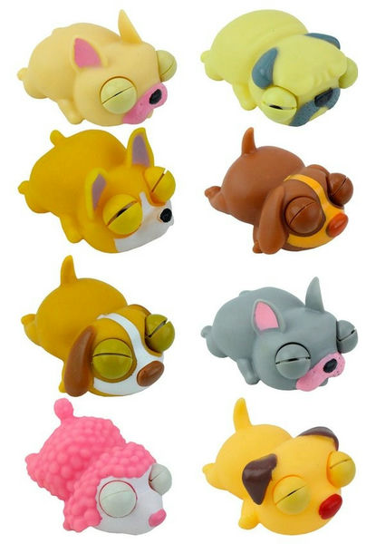 При нажатии на собачку )сожмите с боков) глазаоткрываются и выпячиваются вперед, и щенята просыпаются