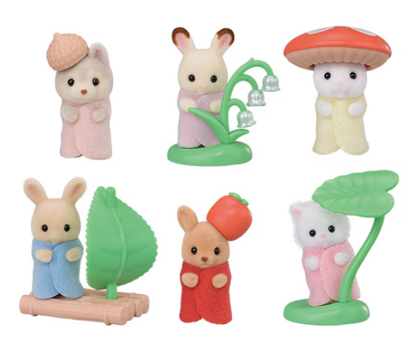 Симпатичная коллекционная серия младенцев с аксессуарами и костюмами на лесную тематику. Всего шесть типов фигурок. В каждый комплект входит аксессуар или костюм для малыша.