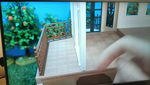 Ещё красиво смотрится этот балкончик. У него плитка отличается от паркета внутри домика