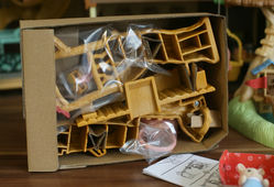 В свое время мы почему-то не купили его у нас, в итоге недавно заказывали из Китая (поэтому наклейки на коробке такие). Фото коробки со всех сторон, ее содержимое и инструкция по сборке: