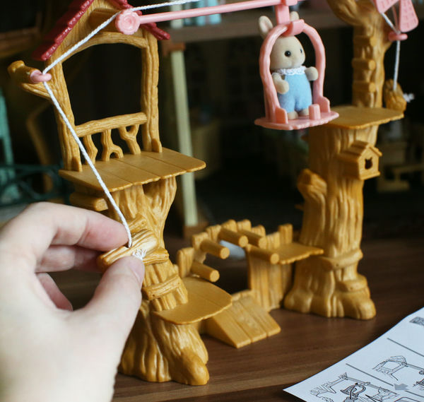 В комплекте: фигурка кролика, части дерева, кабинка, веревка: