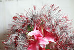 Широкая двухцветная мишура, серебристо-красная, ширина 10 см.