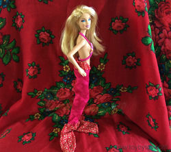 Плавник никак не застёгивается, он просто натягивается на Барби, но к моему большому удивлению он не спадает, а крепко держится.