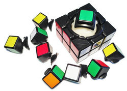 Новая версия Кубика Рубика с пластиковыми вставками вместо наклеек, с более мягким механизмом.